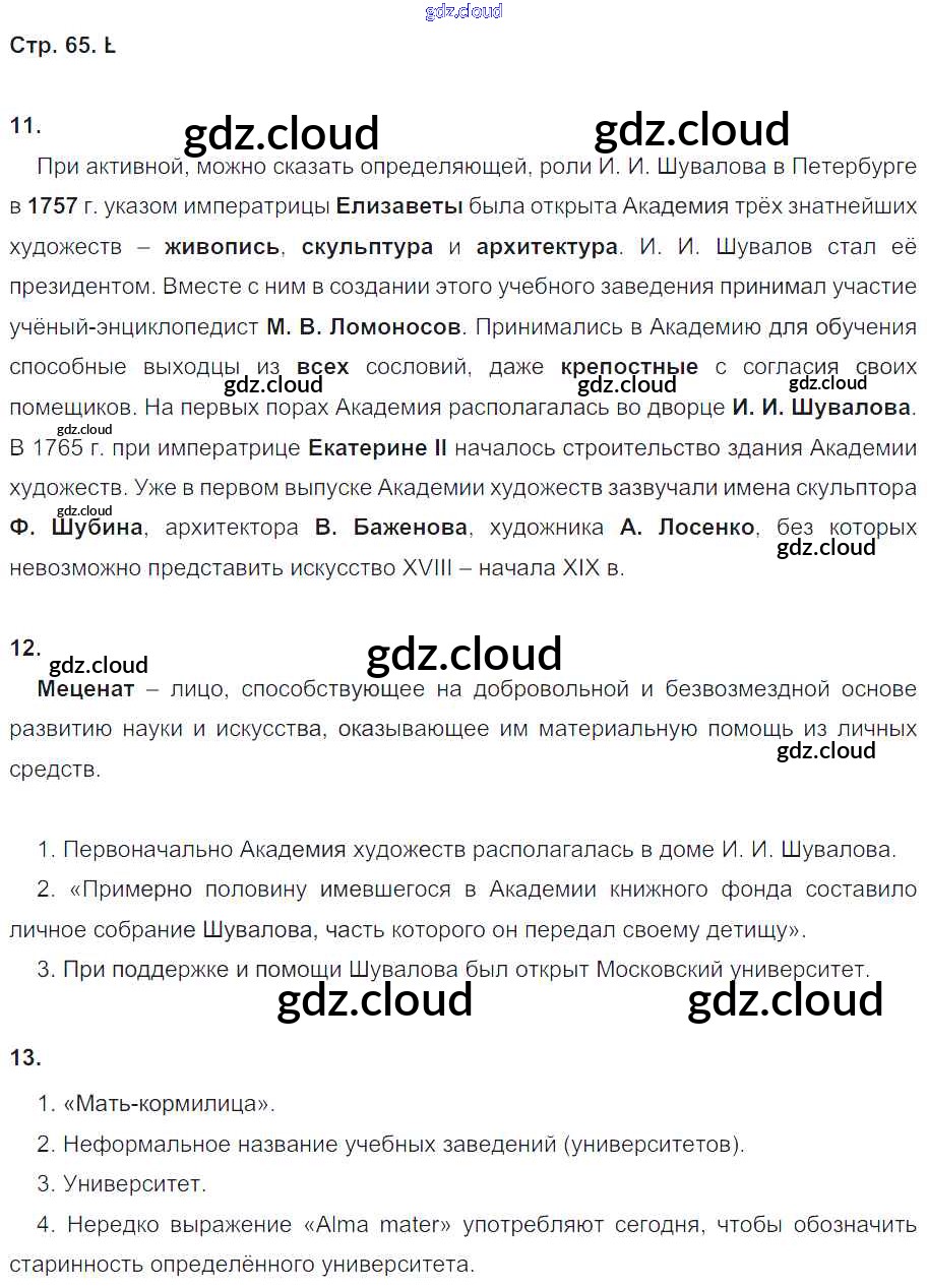 Ответ на задание стр.65 Рабочая тетрадь История за 8 (восьмой) класс Чернова УМК 2017 Часть 1, 2 ФГОС онлайн и без номера телефона.