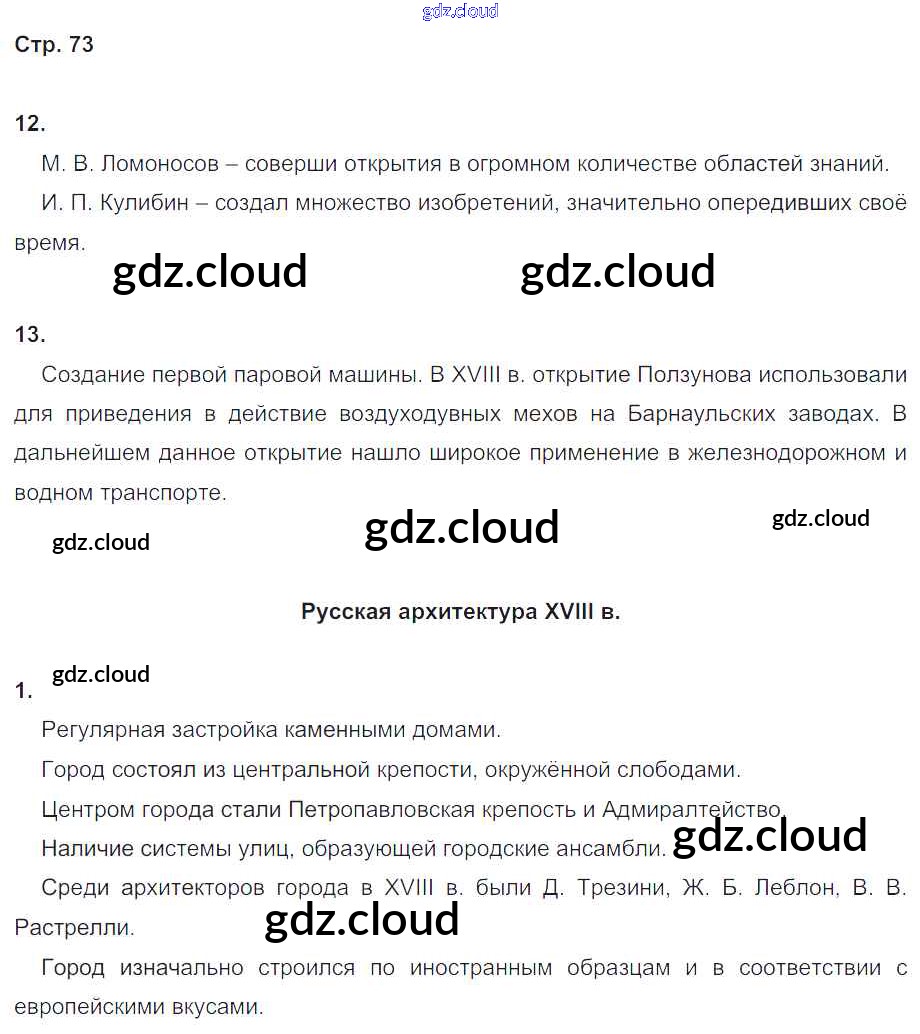 Ответ на задание стр.73 Рабочая тетрадь История за 8 (восьмой) класс Чернова УМК 2017 Часть 1, 2 ФГОС онлайн и без номера телефона.