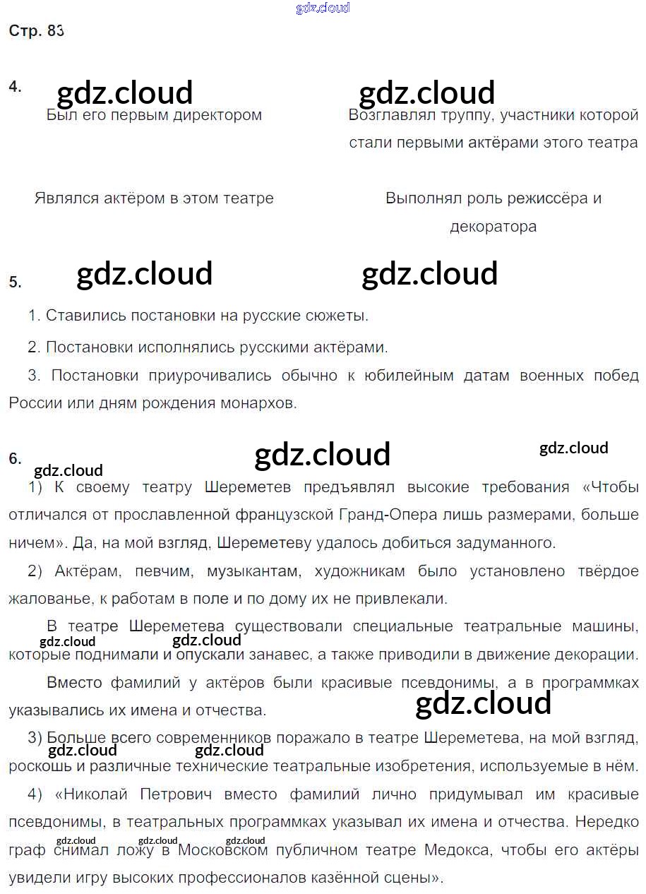 Ответ на задание стр.83 Рабочая тетрадь История за 8 (восьмой) класс Чернова УМК 2017 Часть 1, 2 ФГОС онлайн и без номера телефона.