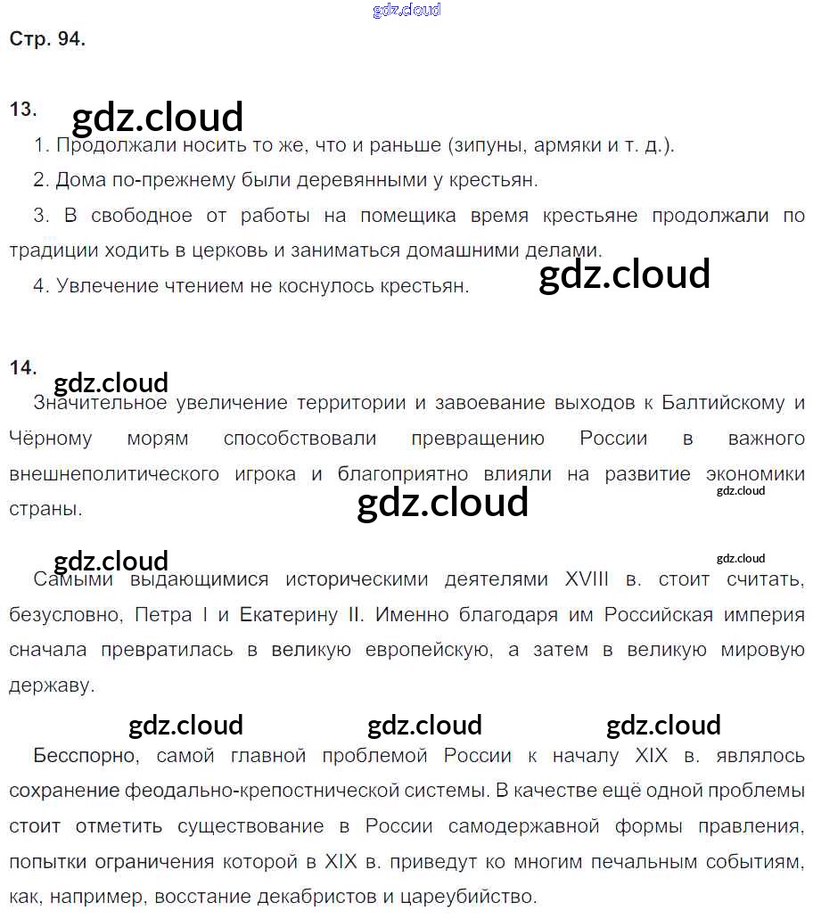 Ответ на задание стр.94 Рабочая тетрадь История за 8 (восьмой) класс Чернова УМК 2017 Часть 1, 2 ФГОС онлайн и без номера телефона.