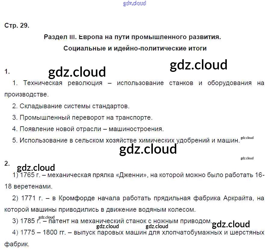 Ответ на задание 29 Рабочая тетрадь История за 8 (восьмой) класс Ермакова Инновационная школа 2017 ФГОС онлайн и без номера телефона.