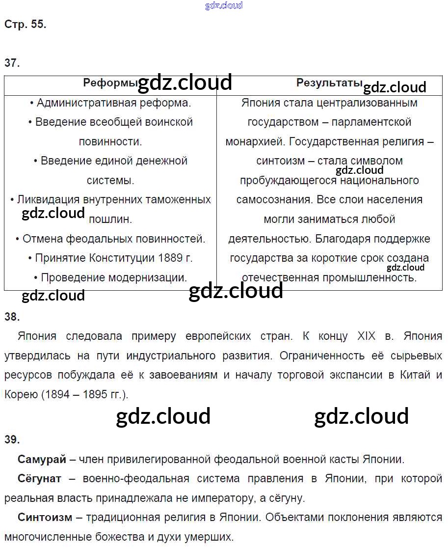 Ответ на задание 55 Рабочая тетрадь История за 8 (восьмой) класс Ермакова Инновационная школа 2017 ФГОС онлайн и без номера телефона.