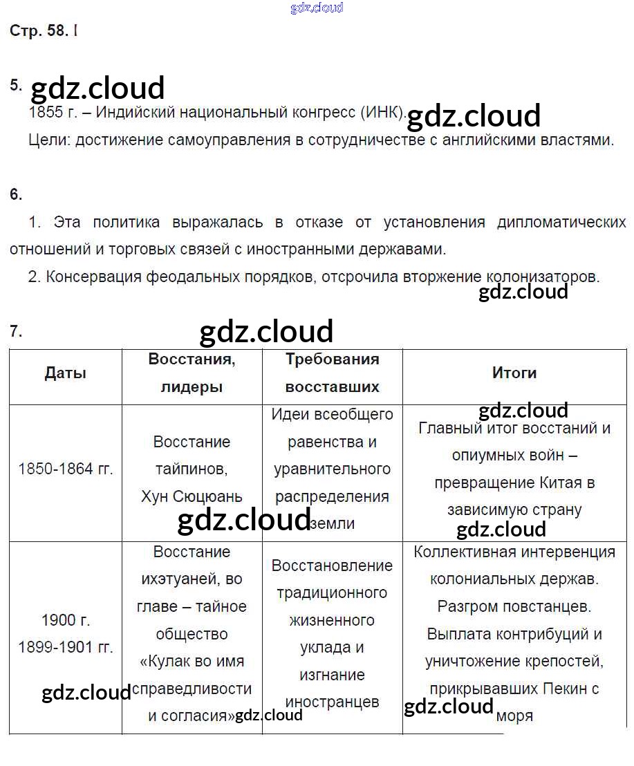 Ответ на задание 58 Рабочая тетрадь История за 8 (восьмой) класс Ермакова Инновационная школа 2017 ФГОС онлайн и без номера телефона.