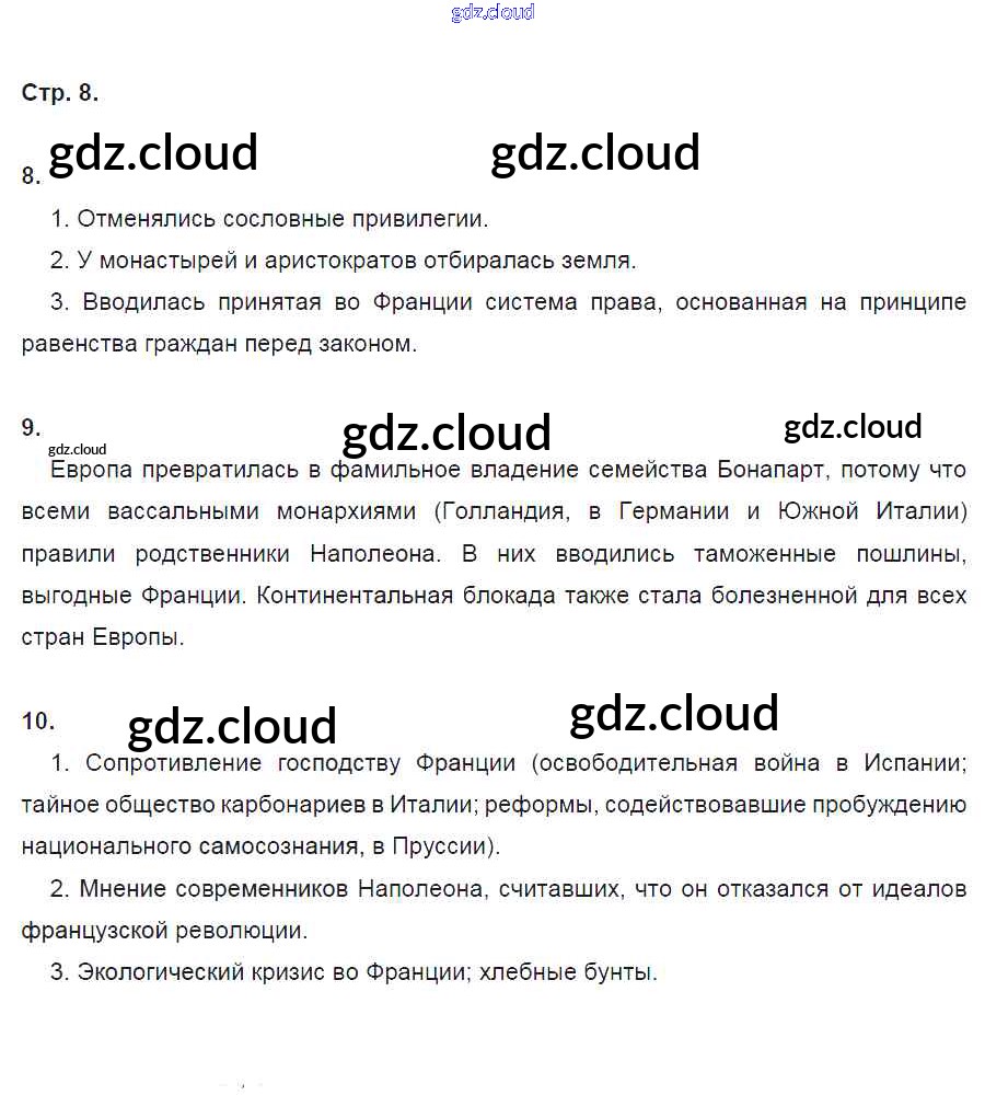 Ответ на задание 8 Рабочая тетрадь История за 8 (восьмой) класс Ермакова Инновационная школа 2017 ФГОС онлайн и без номера телефона.