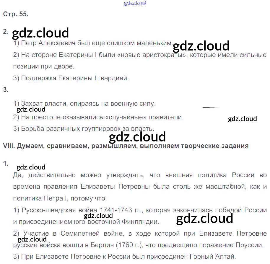 Ответ на задание 55 Рабочая тетрадь История за 8 (восьмой) класс Гевуркова УМК 2018 ФГОС онлайн и без номера телефона.