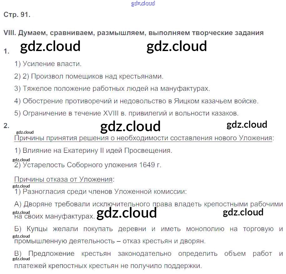 Ответ на задание 91 Рабочая тетрадь История за 8 (восьмой) класс Гевуркова УМК 2018 ФГОС онлайн и без номера телефона.