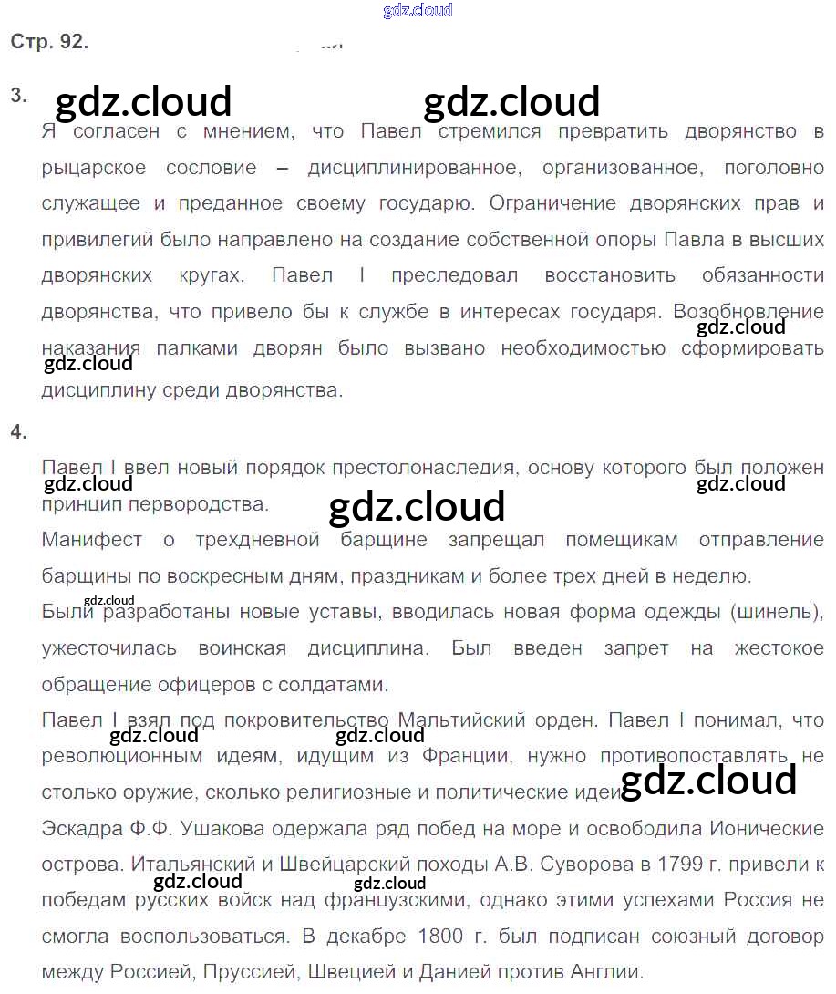 Ответ на задание 92 Рабочая тетрадь История за 8 (восьмой) класс Гевуркова УМК 2018 ФГОС онлайн и без номера телефона.