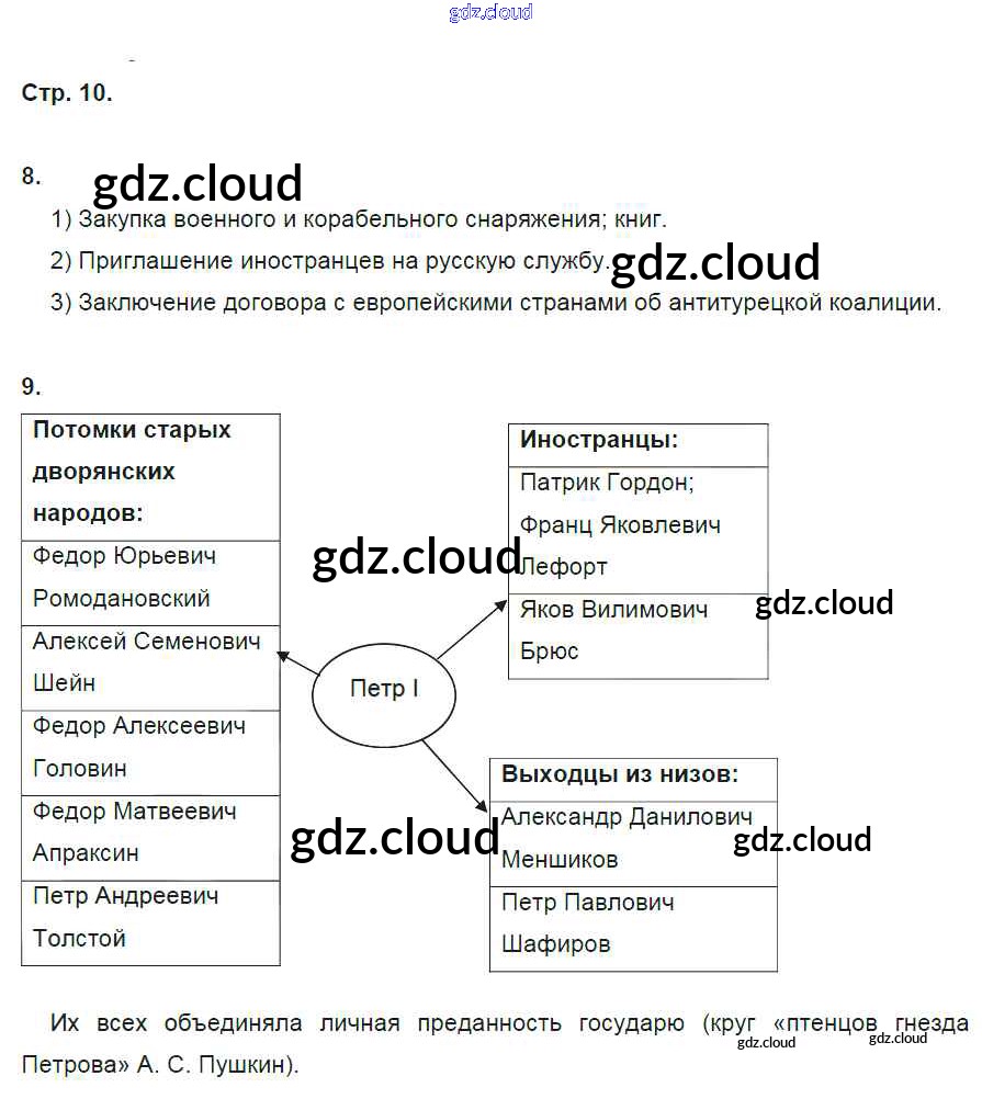 Ответ на задание 10 Рабочая тетрадь История за 8 (восьмой) класс Кочегаров Инновационная школа 2017 ФГОС онлайн и без номера телефона.