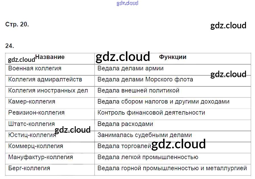Ответ на задание 20 Рабочая тетрадь История за 8 (восьмой) класс Кочегаров Инновационная школа 2017 ФГОС онлайн и без номера телефона.