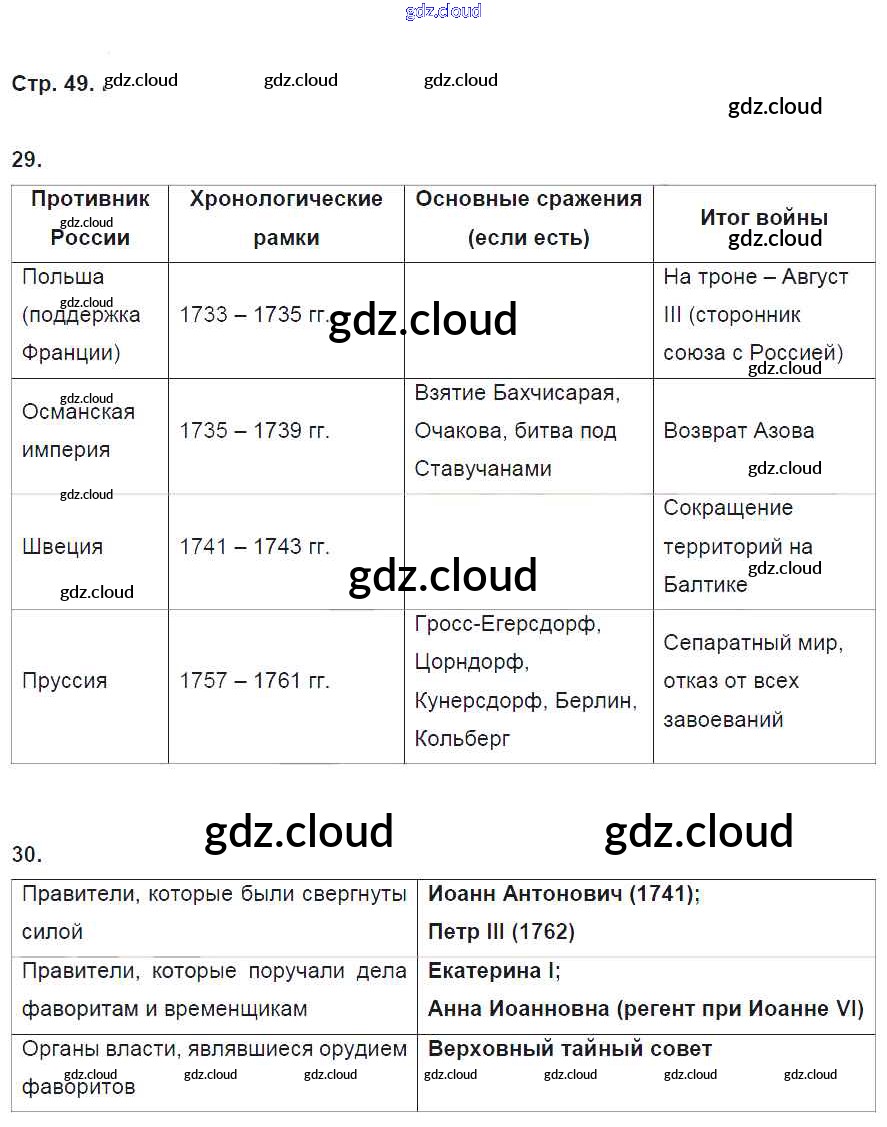 Ответ на задание 49 Рабочая тетрадь История за 8 (восьмой) класс Кочегаров Инновационная школа 2017 ФГОС онлайн и без номера телефона.