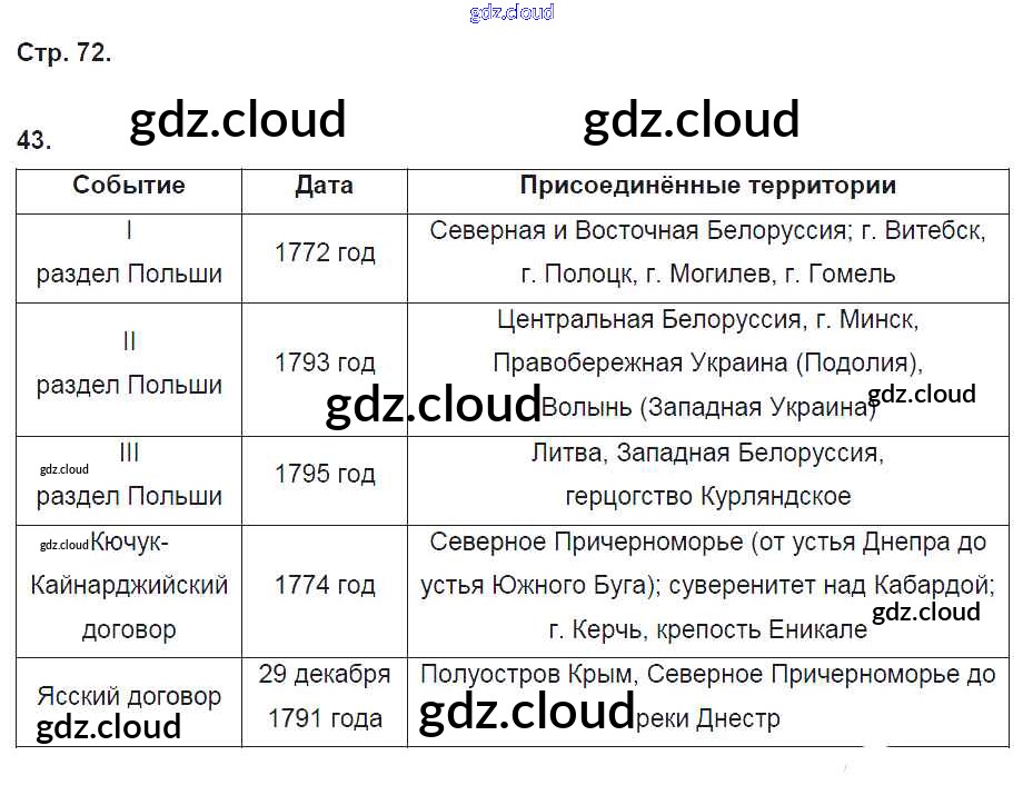 Ответ на задание 72 Рабочая тетрадь История за 8 (восьмой) класс Кочегаров Инновационная школа 2017 ФГОС онлайн и без номера телефона.