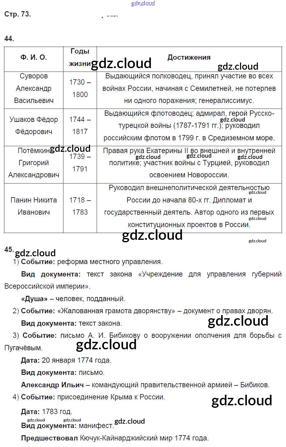 Ответ на задание 73 Рабочая тетрадь История за 8 (восьмой) класс Кочегаров Инновационная школа 2017 ФГОС онлайн и без номера телефона.