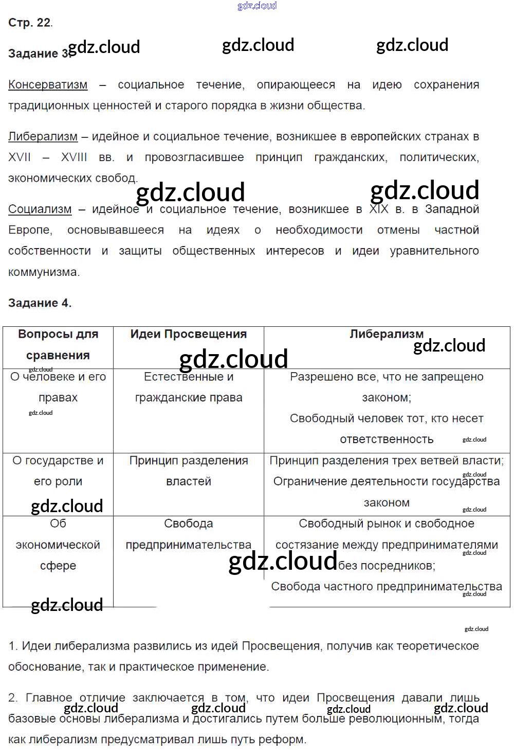 Ответ на задание стр.22 Рабочая тетрадь История за 8 (восьмой) класс Румянцев УМК 2018 Часть 1, 2 ФГОС онлайн и без номера телефона.