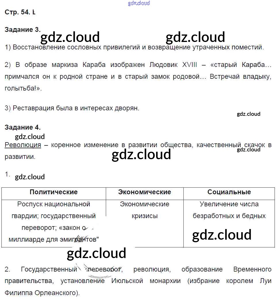Ответ на задание стр.54 Рабочая тетрадь История за 8 (восьмой) класс Румянцев УМК 2018 Часть 1, 2 ФГОС онлайн и без номера телефона.