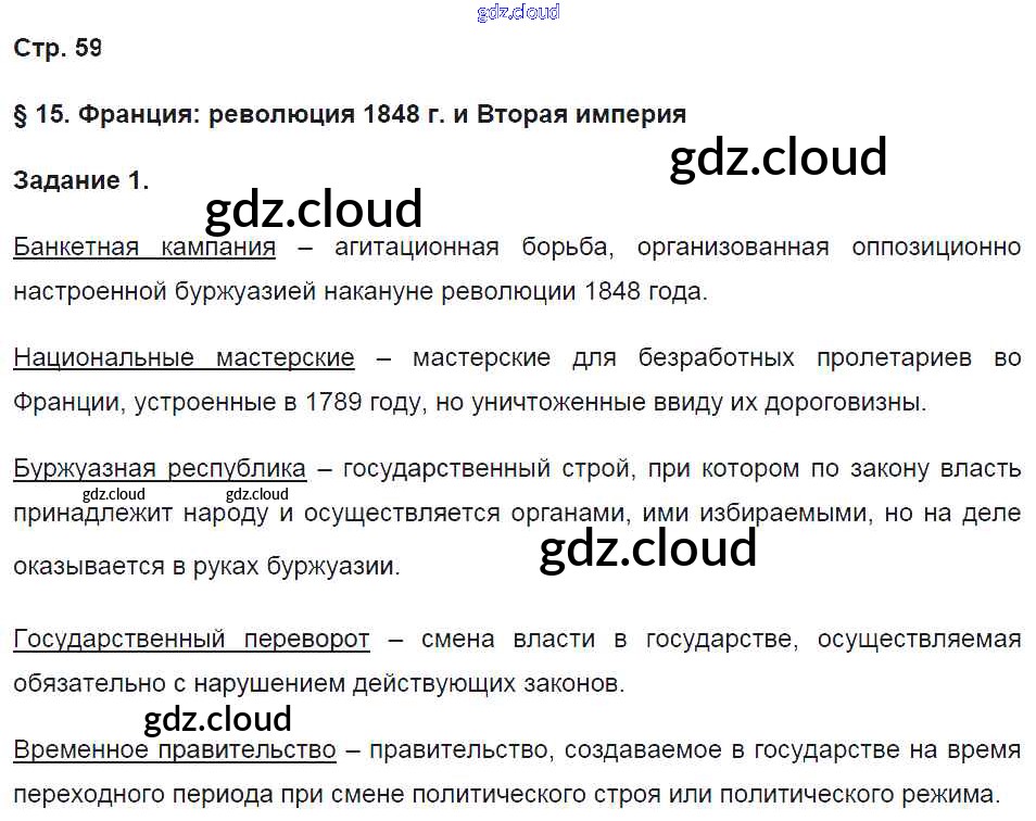 Ответ на задание стр.59 Рабочая тетрадь История за 8 (восьмой) класс Румянцев УМК 2018 Часть 1, 2 ФГОС онлайн и без номера телефона.