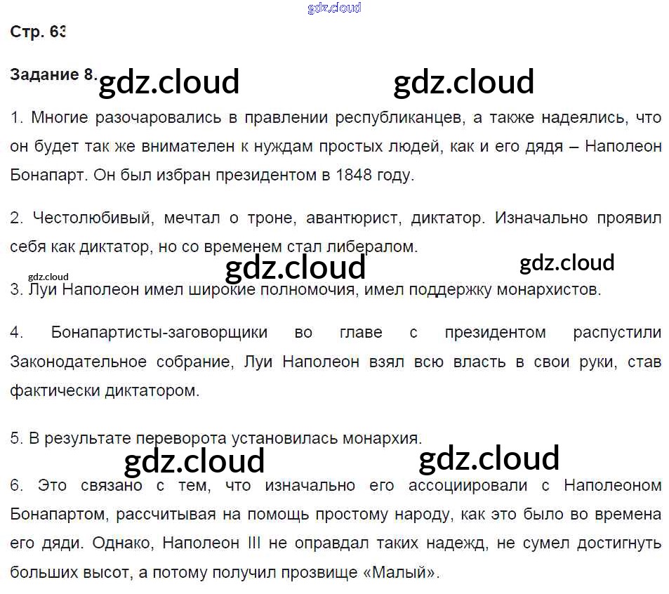 Ответ на задание стр.63 Рабочая тетрадь История за 8 (восьмой) класс Румянцев УМК 2018 Часть 1, 2 ФГОС онлайн и без номера телефона.