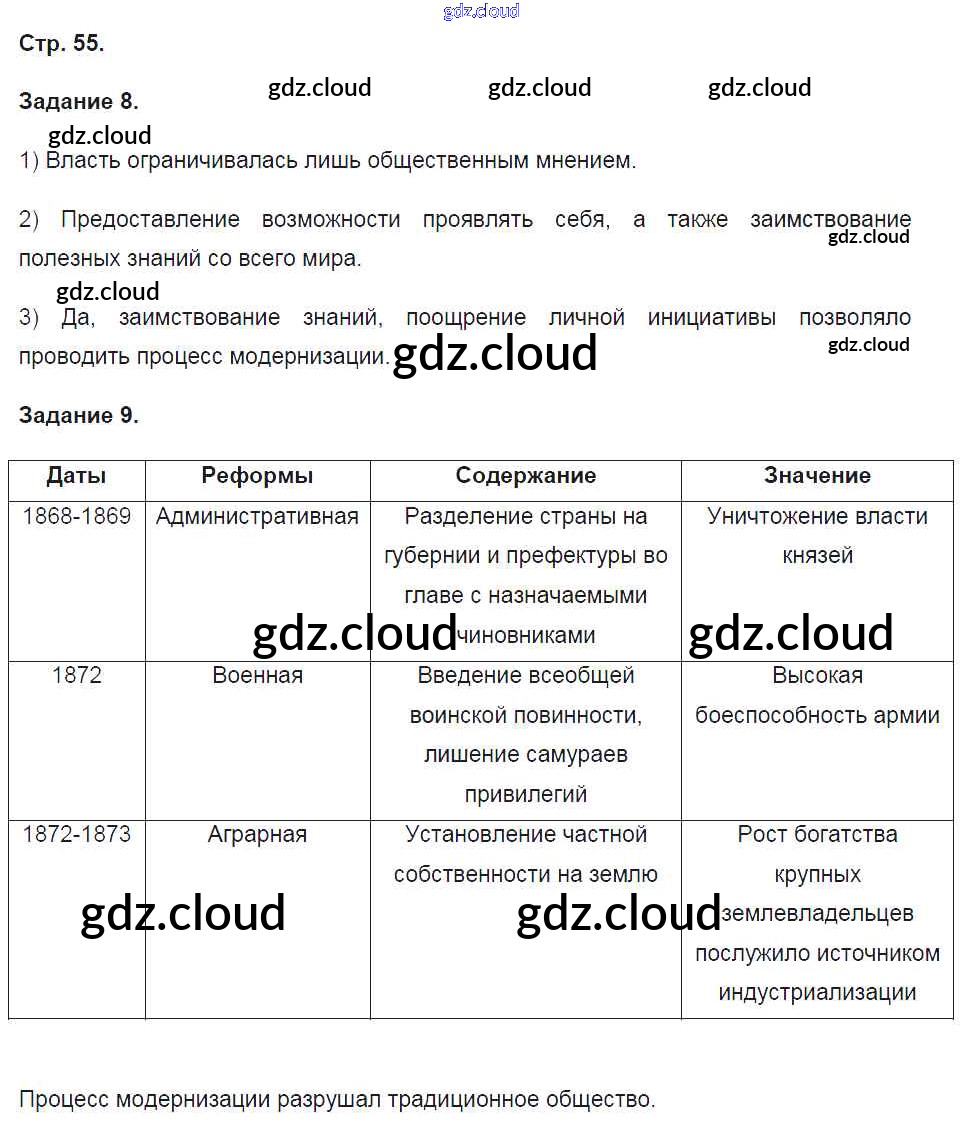 Ответ на задание стр.55 Рабочая тетрадь История за 8 (восьмой) класс Румянцев УМК 2018 Часть 1, 2 ФГОС онлайн и без номера телефона.