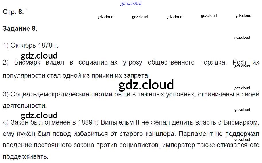 Ответ на задание стр.8 Рабочая тетрадь История за 8 (восьмой) класс Румянцев УМК 2018 Часть 1, 2 ФГОС онлайн и без номера телефона.