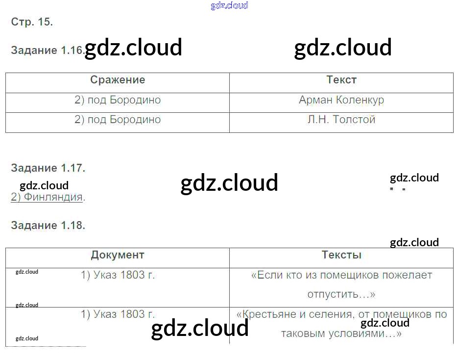 Ответ на задание 15 Рабочая тетрадь с контурными картами История за 8 (восьмой) класс Симонова УМК 2018 ФГОС онлайн и без номера телефона.