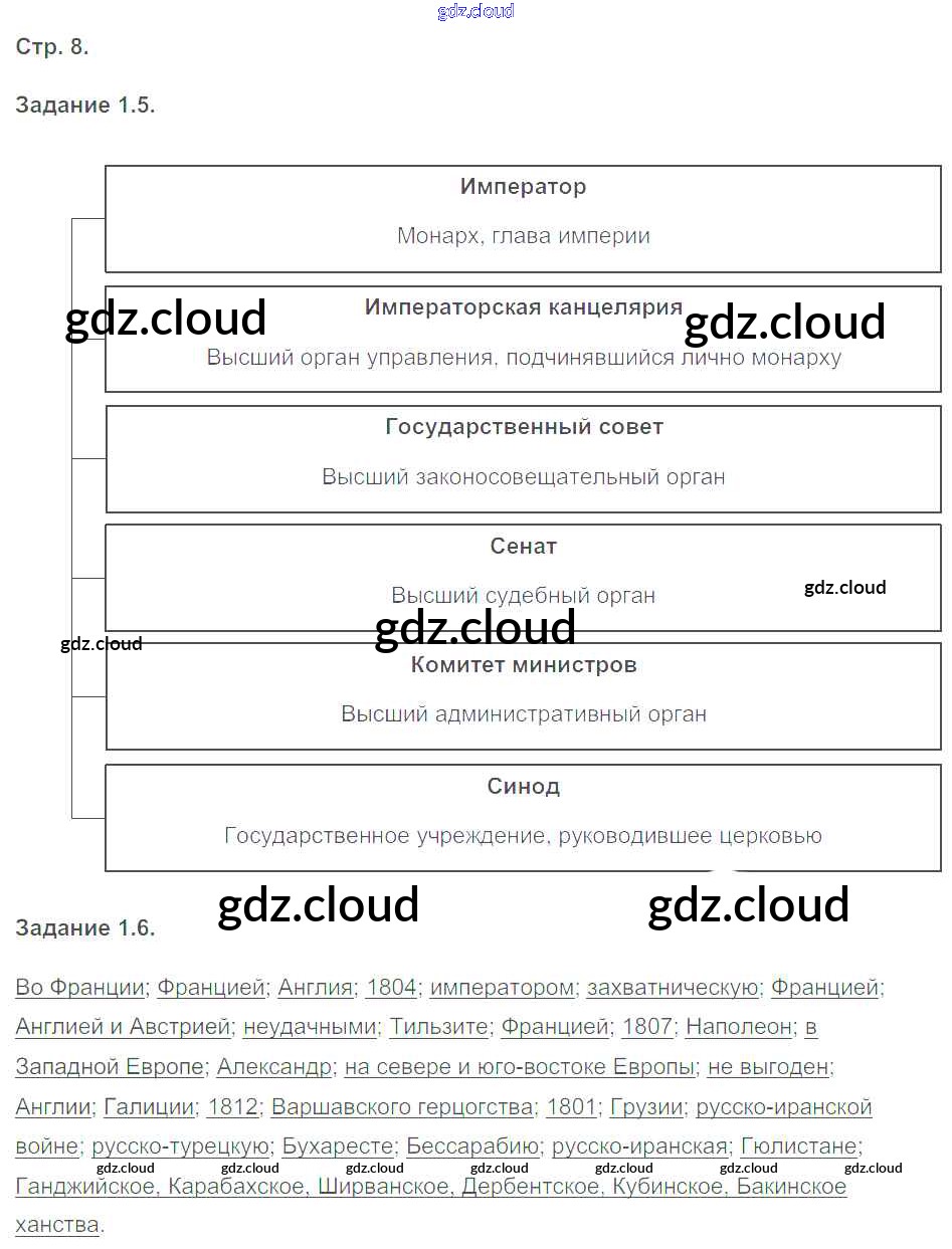 Ответы к Страницам по Истории 8 класс Рабочая тетрадь с контурными картами Симонова УМК Экзамен