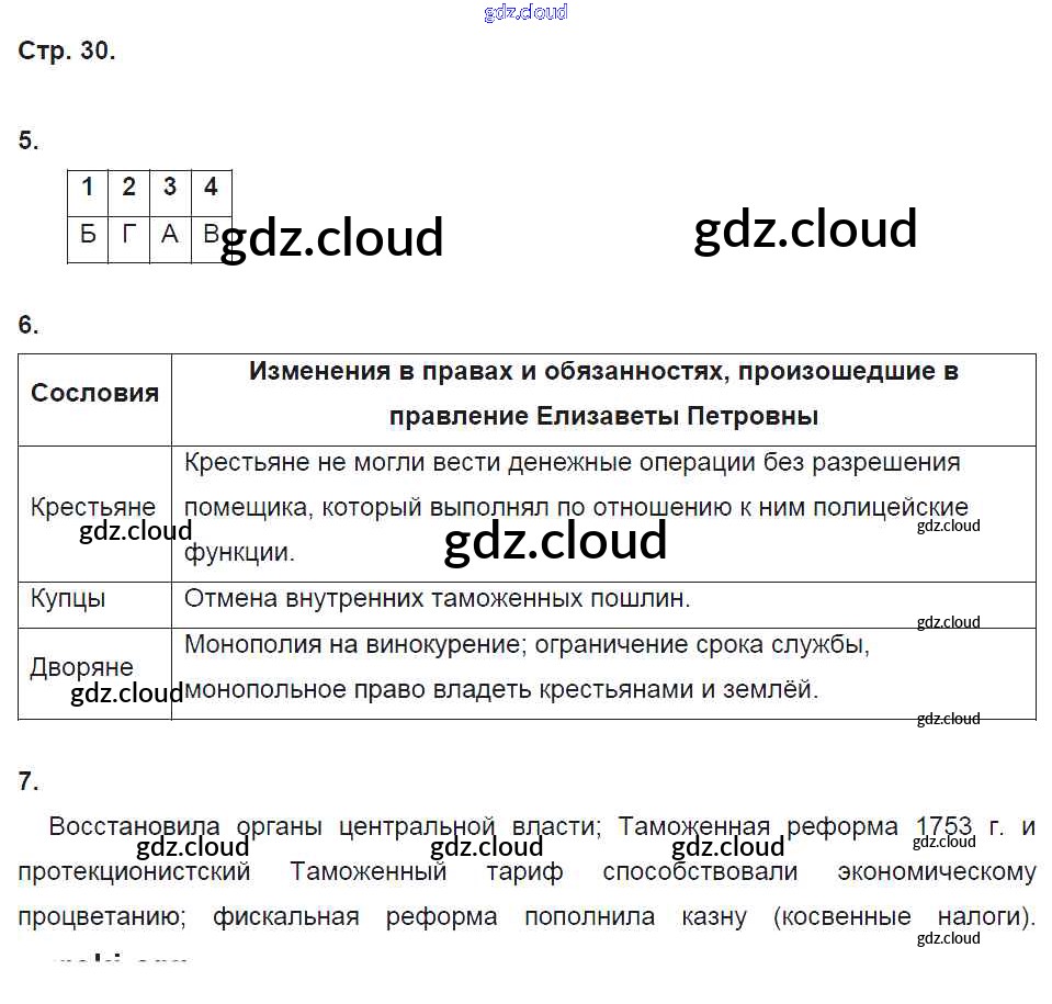 Ответ на задание 30 Рабочая тетрадь История за 8 (восьмой) класс Симонова, Клоков УМК 2019 ФГОС онлайн и без номера телефона.