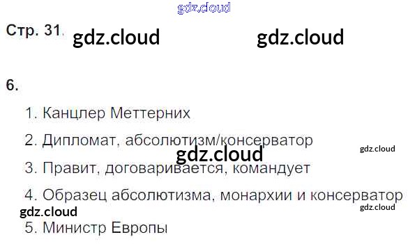 Ответ на задание стр.31 Рабочая тетрадь История за 8 (восьмой) класс Юдовская, Ванюшкина, Баранов УМК 2017 Часть 1, 2 ФГОС онлайн и без номера телефона.