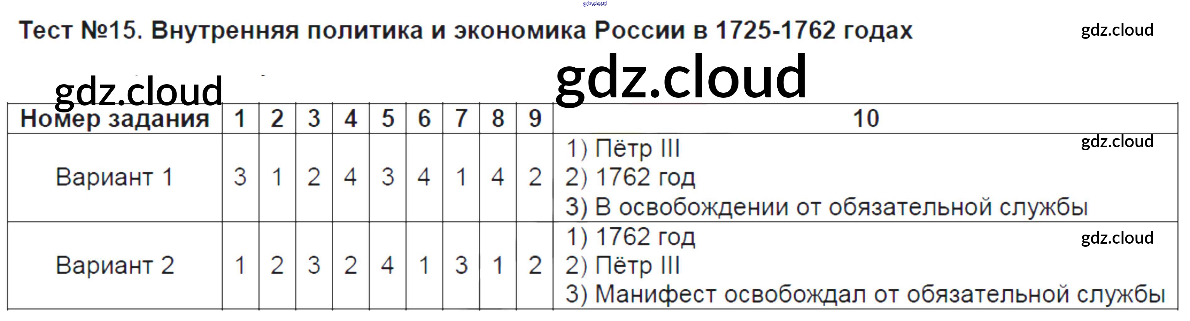 Ответ на задание 15 Тесты История за 8 (восьмой) класс Воробьёва УМК 2017 Часть 1, 2 ФГОС онлайн и без номера телефона.