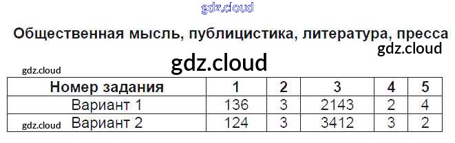 Ответ на задание Общественная мысль, публицистика, литература, пресса Тесты История за 8 (восьмой) класс Воробьёва УМК 2017 Часть 1, 2