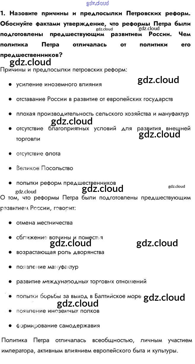 Ответ на задание 1 Учебник История за 8 (восьмой) класс Арсентьев, Курукин, Данилов 2016 Часть 1, 2