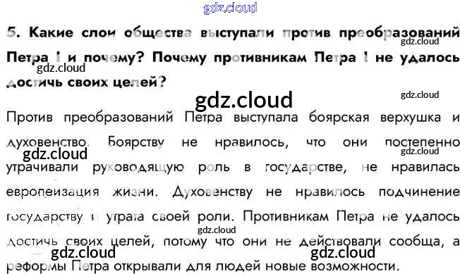 Ответ на задание 5 Учебник История за 8 (восьмой) класс Арсентьев, Курукин, Данилов 2016 Часть 1, 2