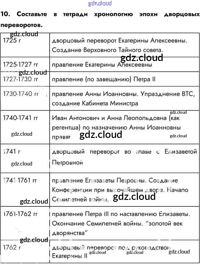 Ответ на задание 10 Учебник История за 8 (восьмой) класс Арсентьев, Курукин, Данилов 2016 Часть 1, 2