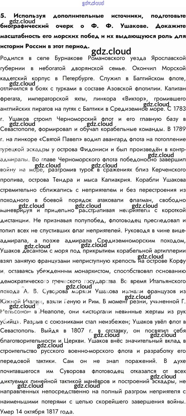 Ответ на задание 5 Учебник История за 8 (восьмой) класс Арсентьев, Курукин, Данилов 2016 Часть 1, 2