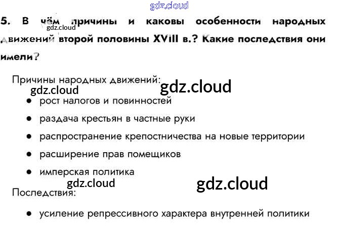 Ответ на задание 5 Учебник История за 8 (восьмой) класс Арсентьев, Курукин, Данилов 2016 Часть 1, 2