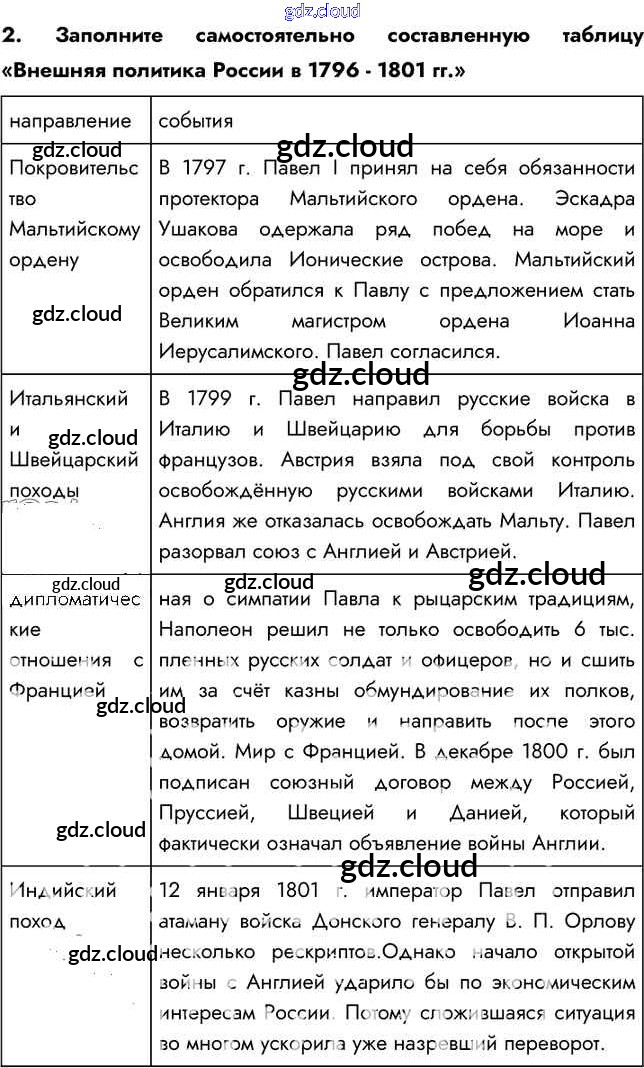 Ответ на задание 2 Учебник История за 8 (восьмой) класс Арсентьев, Курукин, Данилов 2016 Часть 1, 2