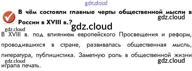 Вопросы в начале параграфа Общественная мысль, публицистика, литература, пресса по Истории 8 класс Учебник Арсентьев Часть 1, 2 Просвещение