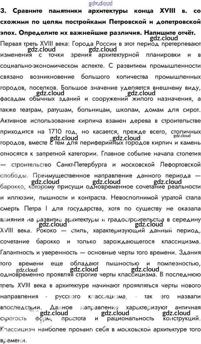 Думаем, сравниваем, размышляем Русская архитектура XVIII в. по Истории 8 класс Учебник Арсентьев Часть 1, 2 Просвещение