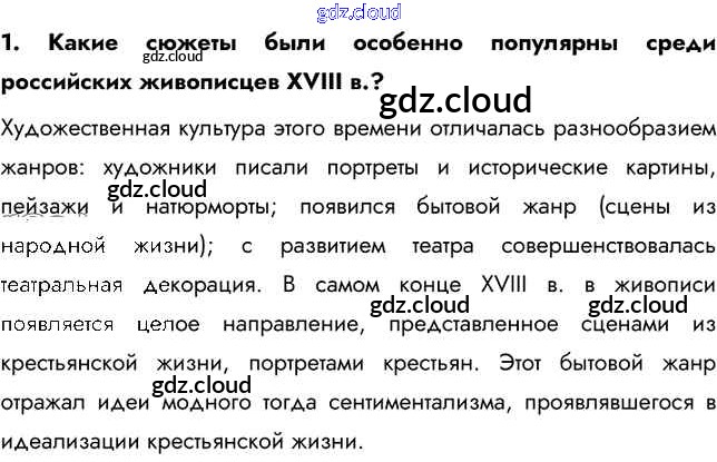 Вопросы и задания Живопись и скульптура по Истории 8 класс Учебник Арсентьев Часть 1, 2 Просвещение