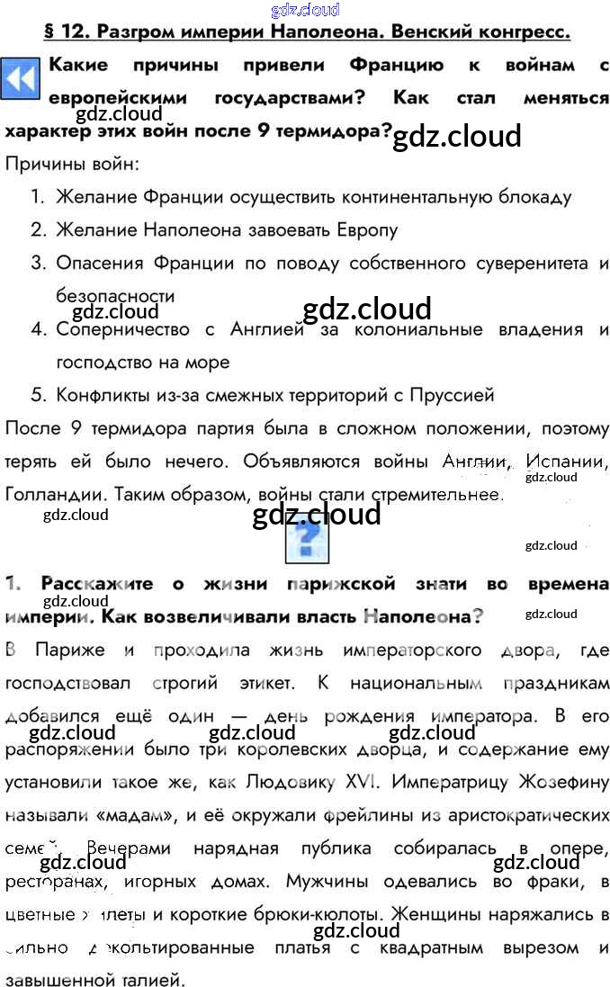 Страницы (ответы) по Истории 8 класс Учебник Юдовская Просвещение