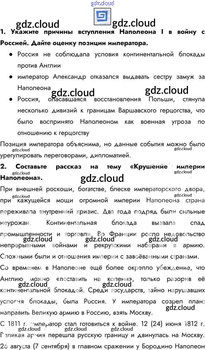 Страницы (ответы) по Истории 8 класс Учебник Юдовская Просвещение