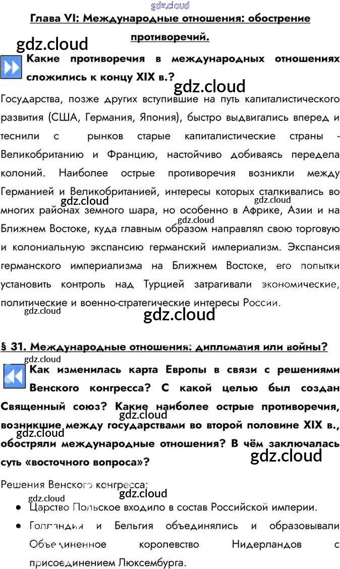 Страницы (ответы) по Истории 8 класс Учебник Юдовская Просвещение