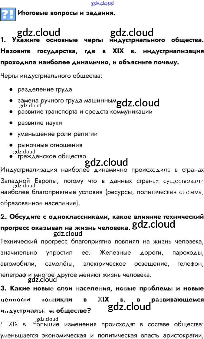 Страницы (ответы) по Истории 8 класс Учебник Юдовская Просвещение