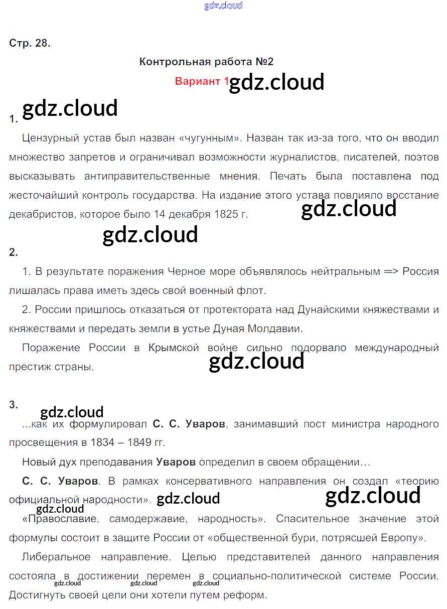 Ответ на задание 28 Контрольные работы История за 9 (девятый) класс Артасов УМК 2017 ФГОС онлайн и без номера телефона.