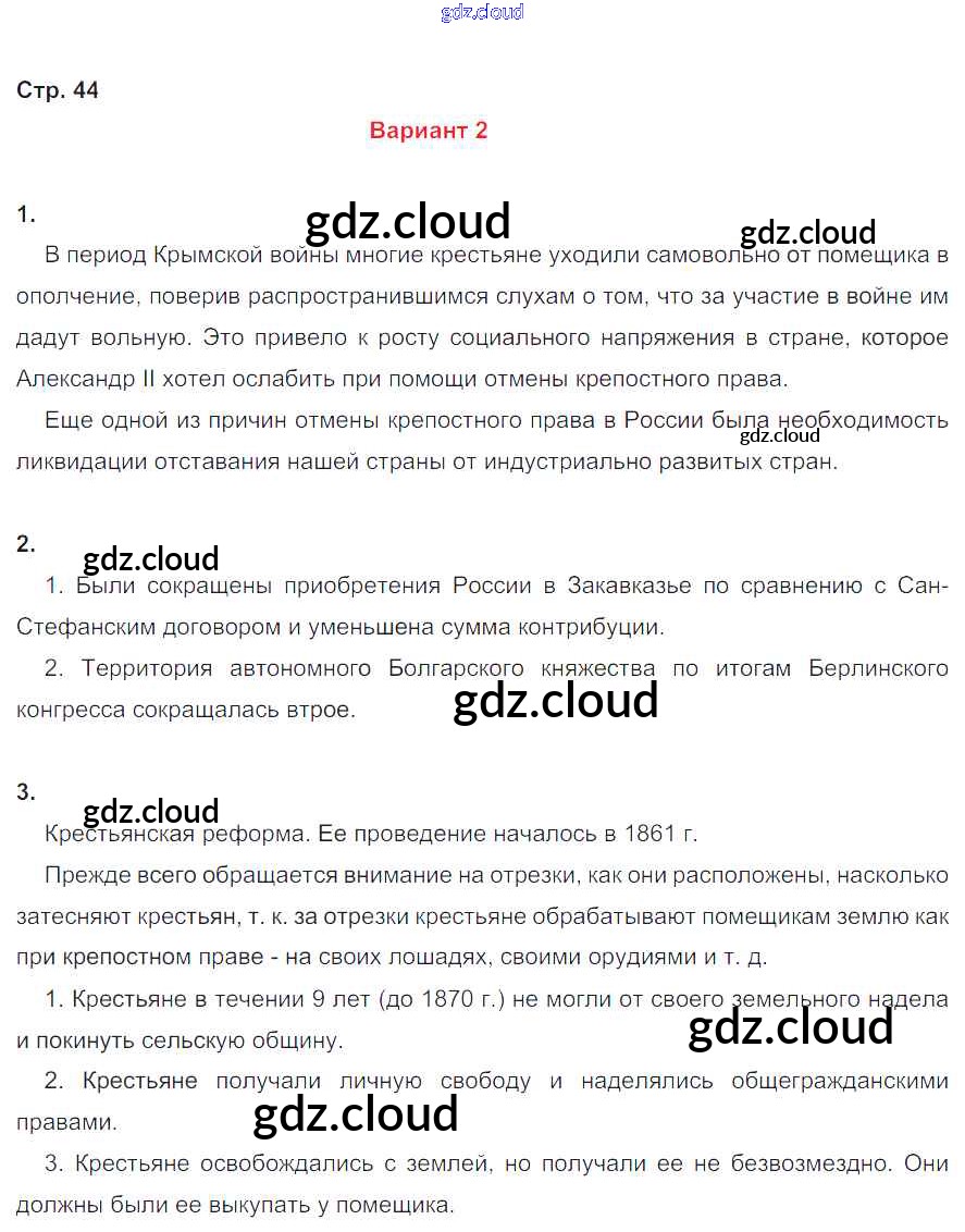 Ответ на задание 44 Контрольные работы История за 9 (девятый) класс Артасов УМК 2017 ФГОС онлайн и без номера телефона.