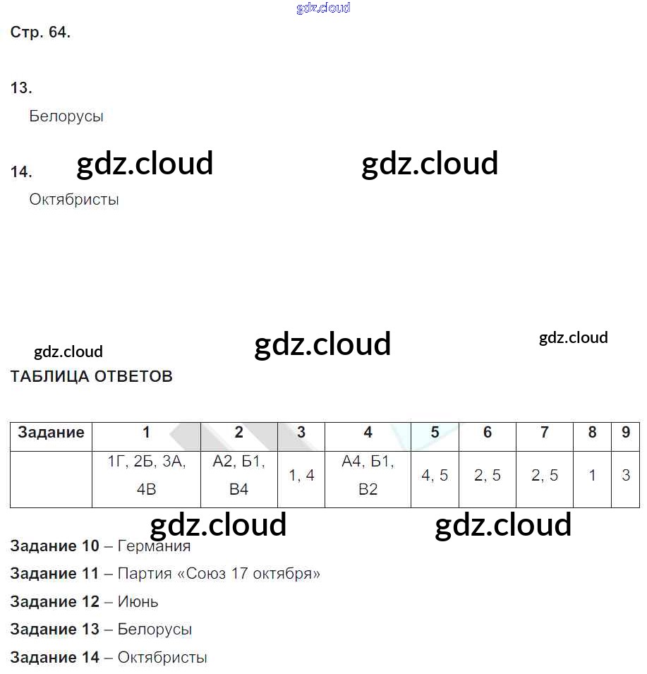 Ответ на задание 64 Контрольные работы История за 9 (девятый) класс Артасов УМК 2017 ФГОС онлайн и без номера телефона.