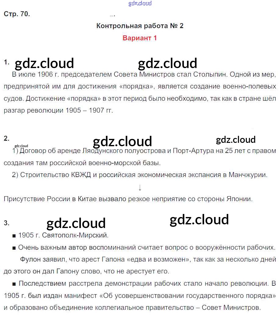 Ответ на задание 70 Контрольные работы История за 9 (девятый) класс Артасов УМК 2017 ФГОС онлайн и без номера телефона.