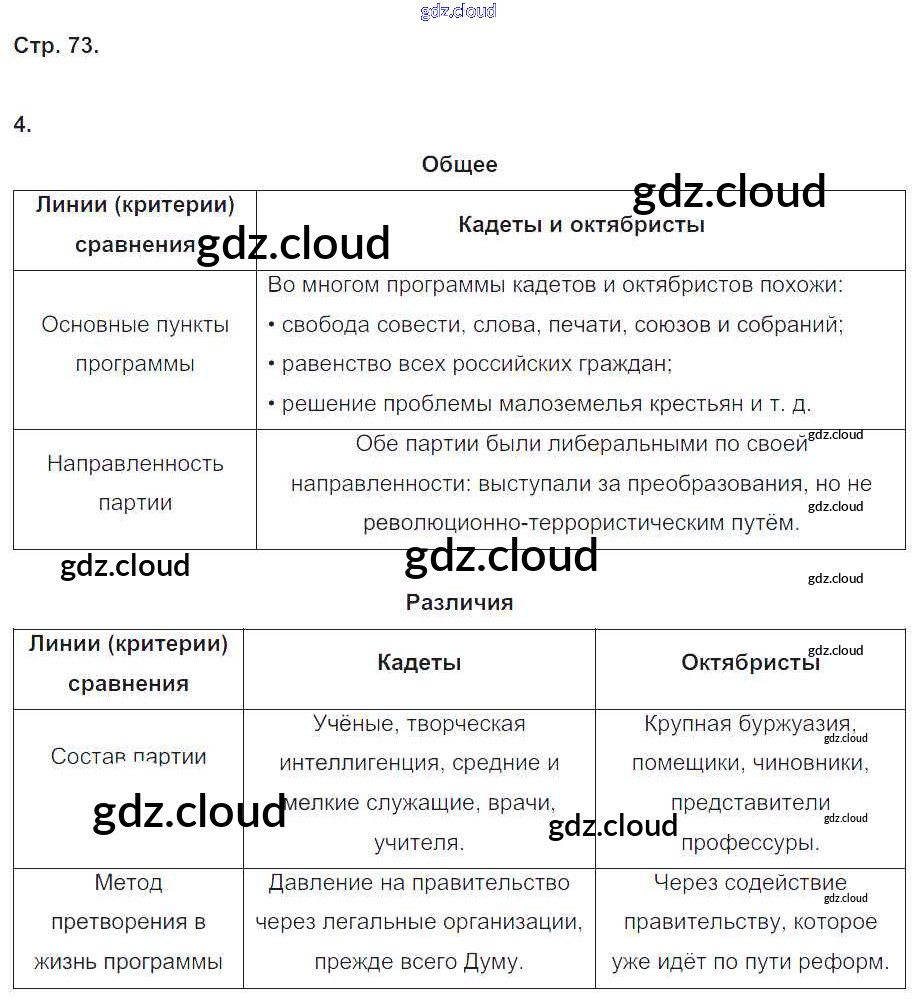 Ответ на задание 73 Контрольные работы История за 9 (девятый) класс Артасов УМК 2017 ФГОС онлайн и без номера телефона.