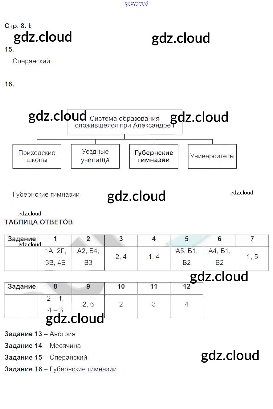 Ответ на задание 8 Контрольные работы История за 9 (девятый) класс Артасов УМК 2017 ФГОС онлайн и без номера телефона.