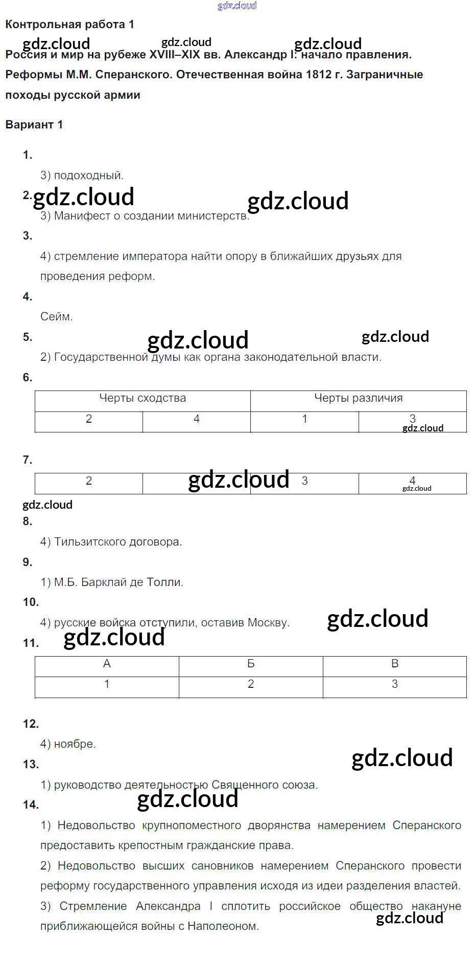 Ответы к КР-1. Варианты по Истории 9 класс Контрольные работы Соловьев УМК Экзамен