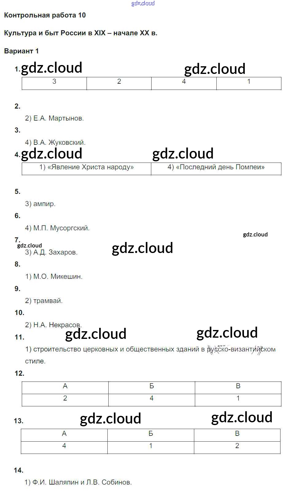 Ответы к КР-10. Варианты по Истории 9 класс Контрольные работы Соловьев УМК Экзамен