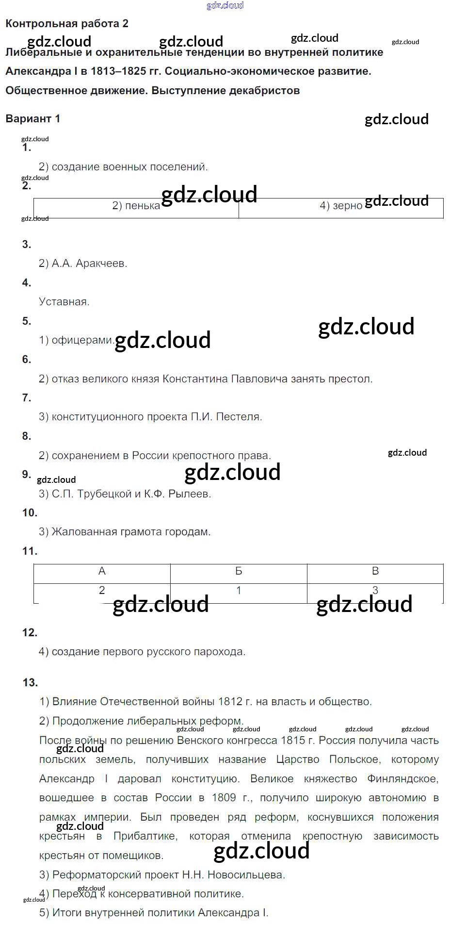 Ответы к КР-2. Варианты по Истории 9 класс Контрольные работы Соловьев УМК Экзамен